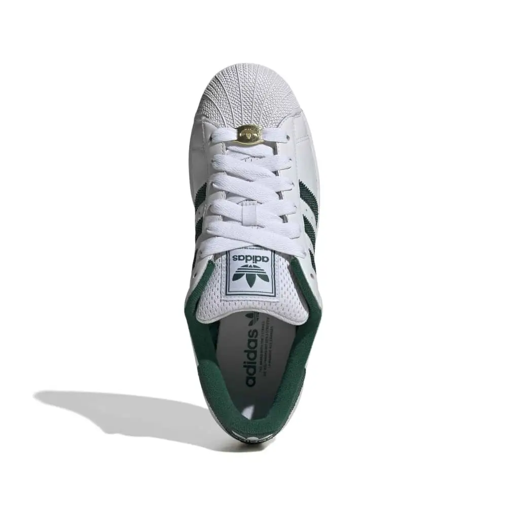 Step into the spotlight with the adidas Superstar II Sneakers White, a fresh take on a streetwear legend. These kicks blend timeless style with modern edge, designed for those who move to their own beat. The breathable mesh tongue keeps your feet cool, while the leather upper with iconic textile stripes and sleek heel details add a polished finish. Ready to switch up your vibe? The extra lace set and bold lace jewel let you customize your look with subtle flair. Built tough with a durable rubber outsole, these sneakers deliver reliable grip for city streets and beyond.